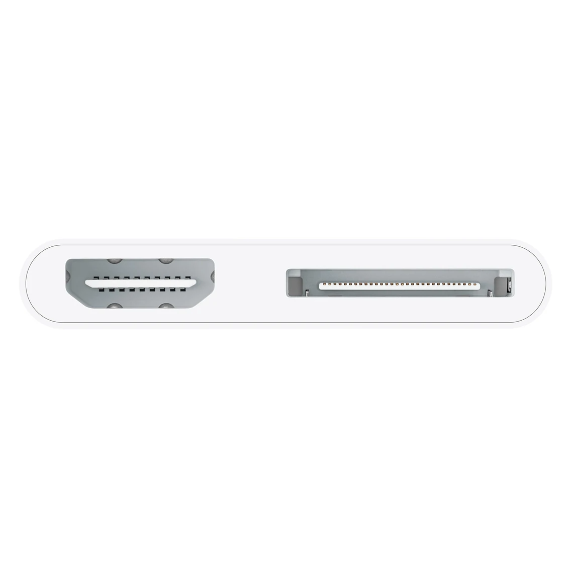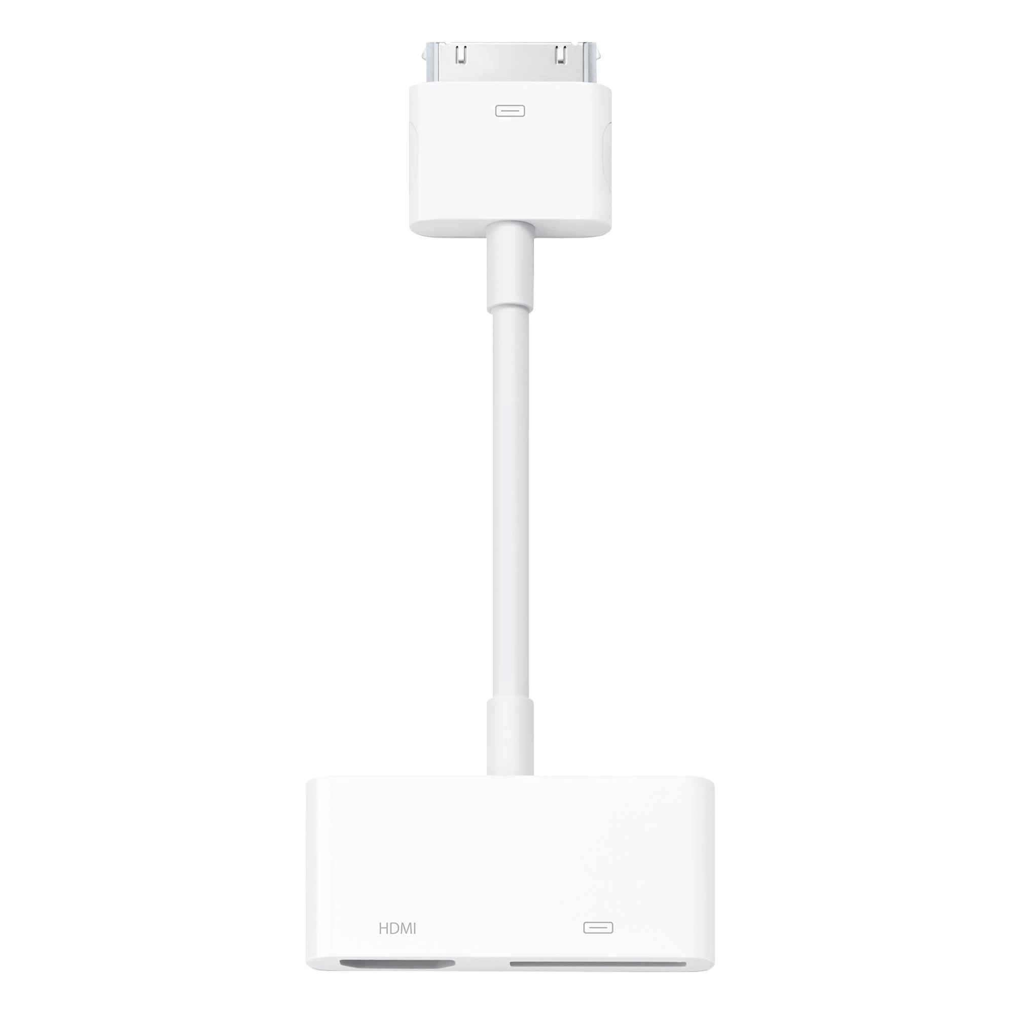 Use the Apple Digital AV Adapter to mirror whatever’s on your iPad or iPhone 4S screen — apps, presentations, websites, and more — on your HDTV or HDMI-compatible display in up to 1080p HD (movies play at up to 720p). Watch slideshows and movies on the big screen in up to 720p by connecting your iPad, iPhone 4, or iPod touch (4th generation) to an HDTV or HDMI-compatible display. The Apple Digital AV Adapter routes digital audio to screens that support it. Connect the Apple Digital AV Adapter to your iPad, iPhone 4, iPhone 4S, or iPod touch (4th generation) via the 30-pin dock connector and to your HDMI-compatible display using an HDMI cable (sold separately). A second 30-pin connector built into the AV adapter lets you charge and sync your device while it’s connected to your HDMI-compatible display.