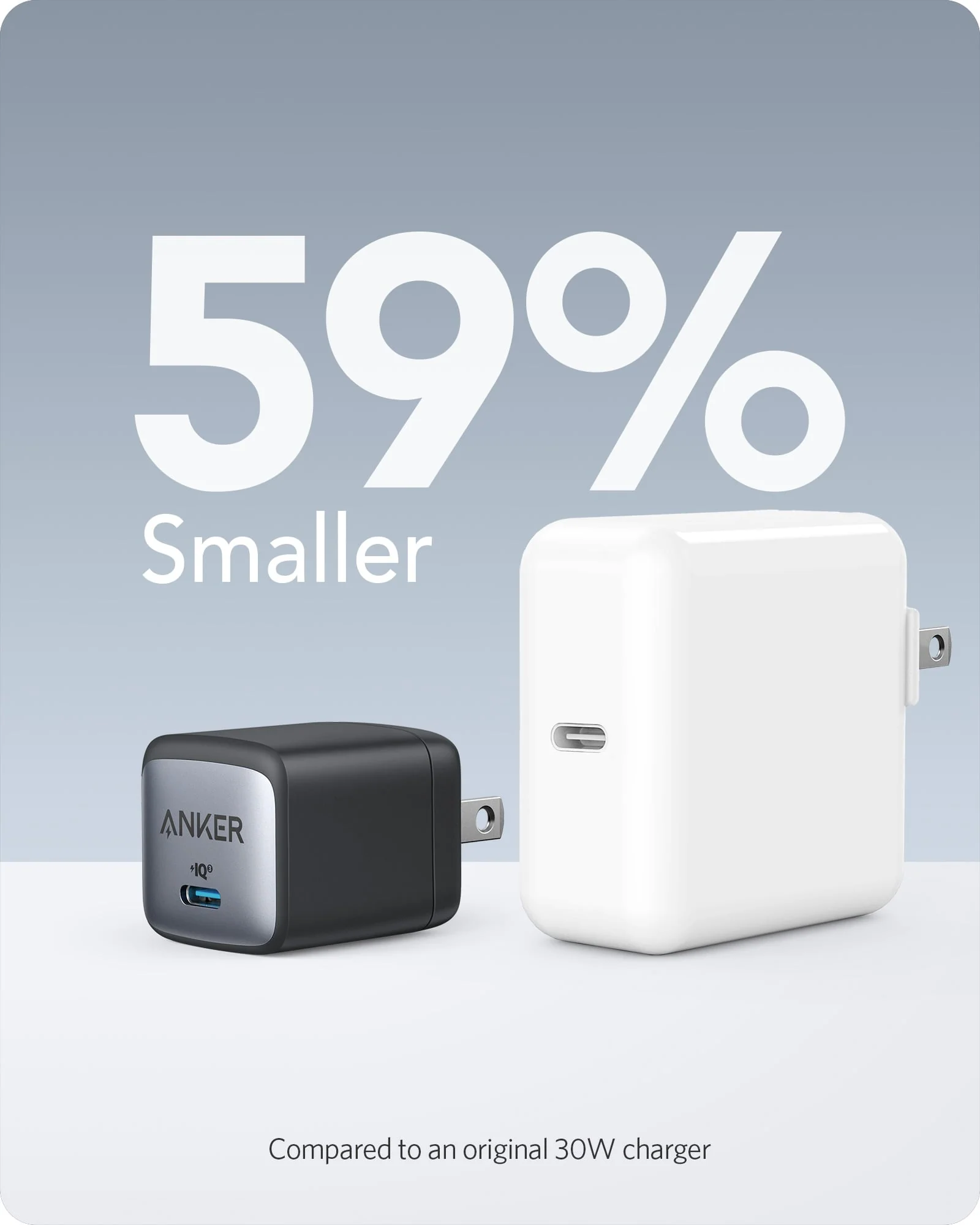 Downsized Design: At 34% smaller than an original 45W USB-C charger, Anker Nano II takes up less space while giving you just as much power.