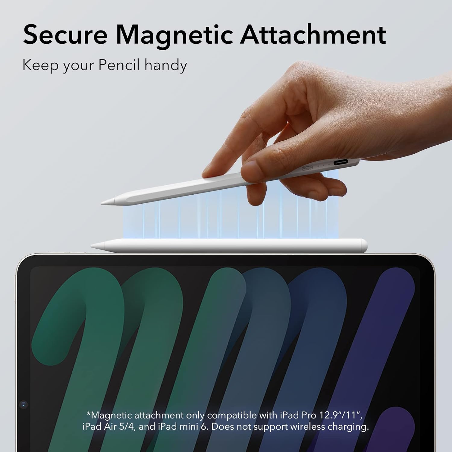 Magnetic Attachment: Keep your stylus secure and within reach by utilizing the magnetic attachment feature. The stylus easily attaches to your tablet for convenient storage on the go. Note that magnetic attachment is compatible only with iPad Pro 12.9” (2023/2022/2021/2020/2018)/11”, iPad Air 5/4, iPad 10th Gen, and iPad mini 6. Please be aware that it does not support wireless charging.