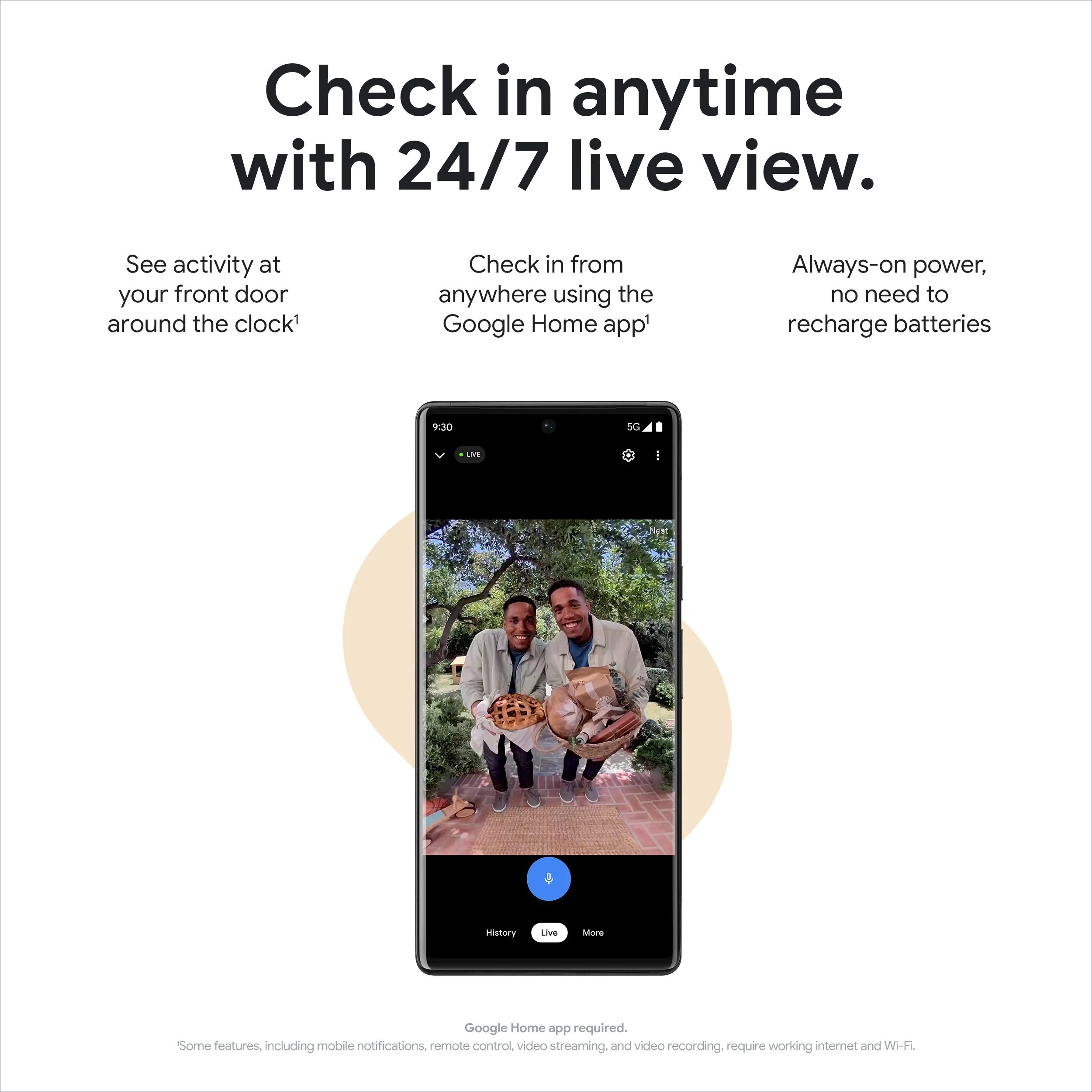 2Continuous video recording requires a Nest Aware Plus subscription.