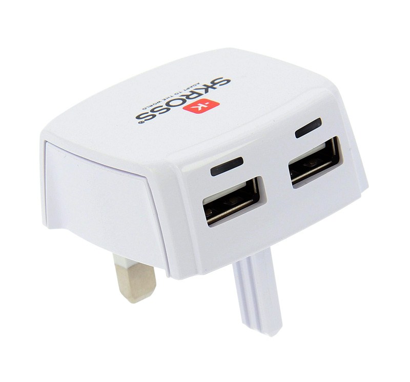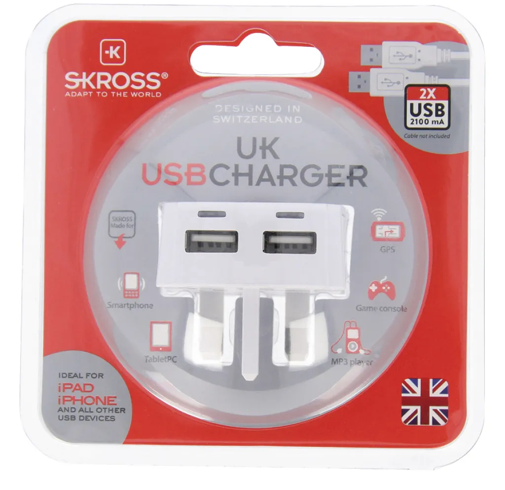 The UK USB Charger quickly and simultaneously charges two USB devices. Its high power output is ideal to charge smartphones, tablets or any other USB device.