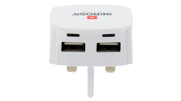 The UK USB Charger charges two USB devices quickly and simultaneously. Its high current is ideal for charging smartphones, tablets or any other USB device.