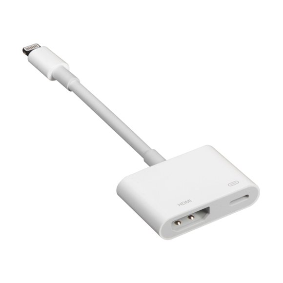 The Apple Lighting Digital AV Adapter offers multiple ports, enabling compatible iPads, iPhones, and iPods to output high-quality digital video and audio to any HDMI-equipped TV. This adapter delivers a top-notch wired output that rivals the wireless streaming standard of AirPlay. It's the perfect tool for anyone who wants an excellent viewing experience with their Apple devices.